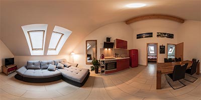 Die Wohnungen sind 55m² groß und bieten Platz für max. 5 Personen. Sie sind aufgeteilt in 2 Schlafzimmer (Doppelbetten), Wohn- Esszimmer mit Schlafcouch und Küchenzeile, Badezimmer (Dusche), WC und Vorraum.